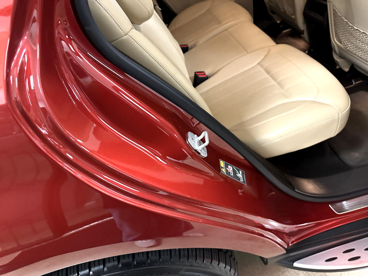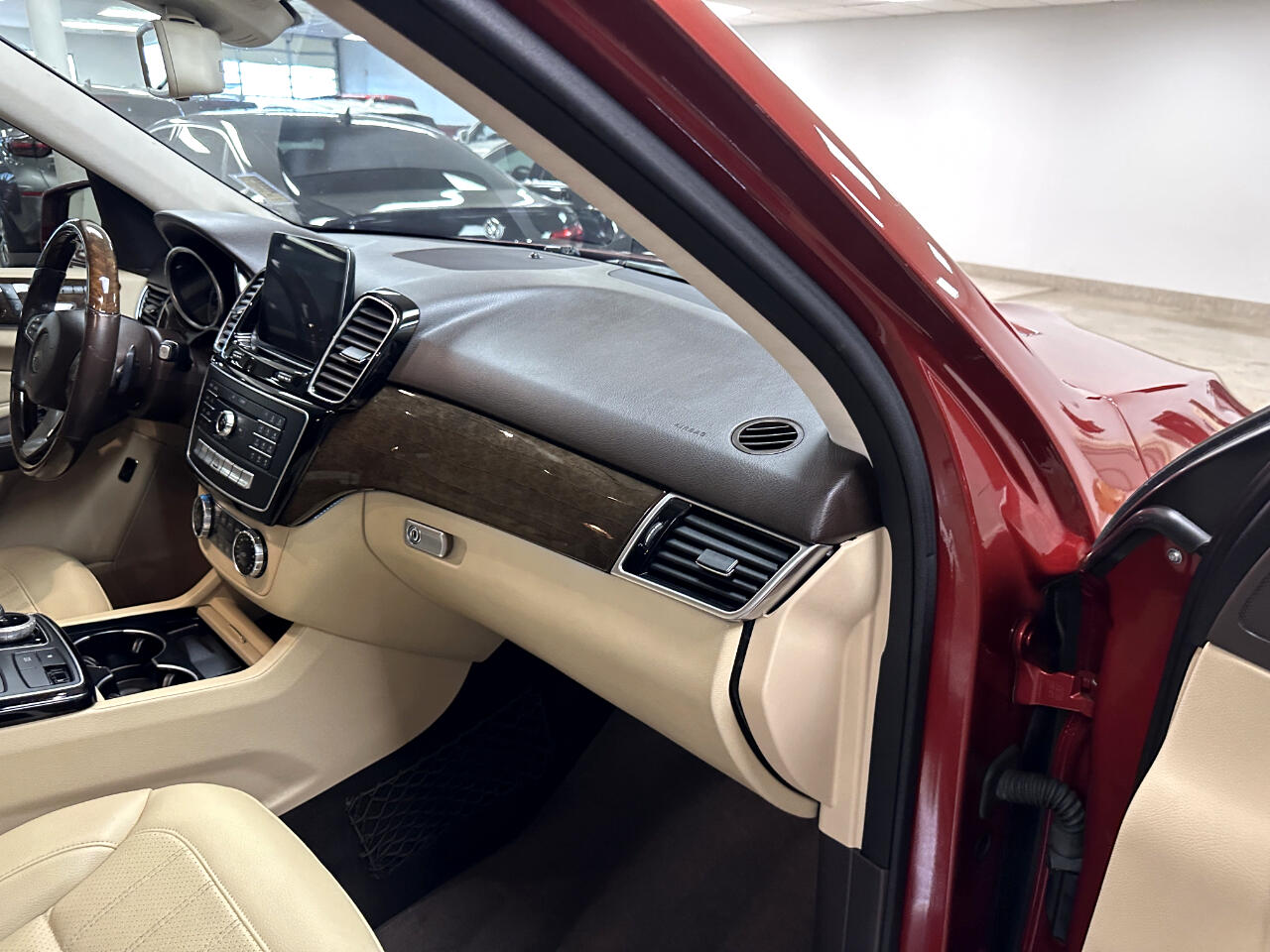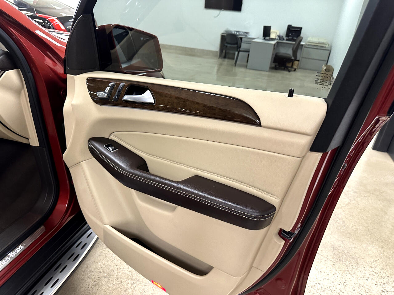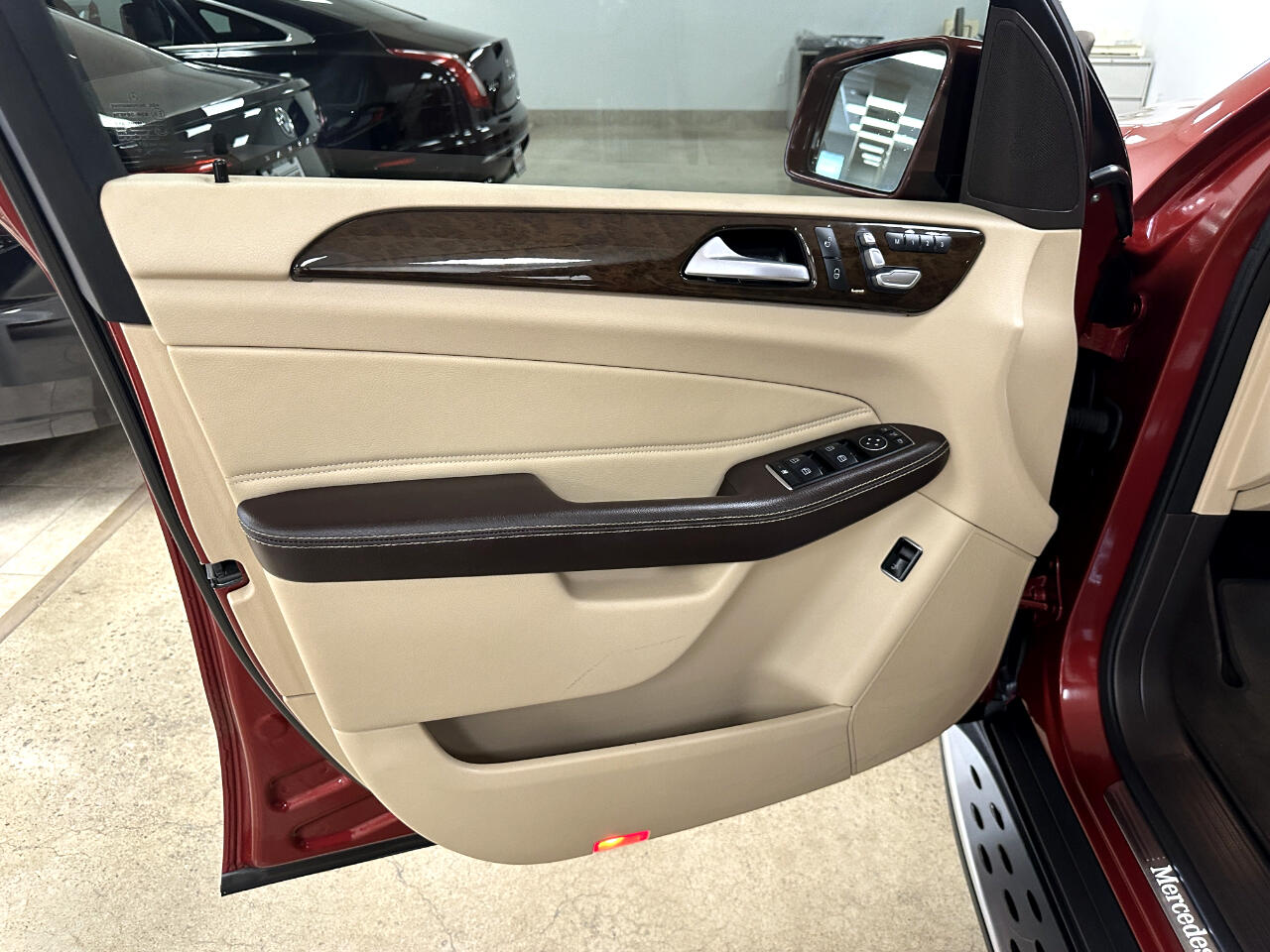 Premium Pkg with COMAND Navigation, 8-in hi-resolution LCD screen, 10GB music register, SD card slot, Aux input jack, Bluetooth, Power heated front bucket seats, Dual-zone climate control, Power tilt/telescoping steering column, Leather/wood steering wheel with auto tilt-away, Ambient interior lighting, Power heated side mirrors with driver auto-dimming, power folding and turn signal indicators, Glass power sunroof, Heated rear wiper and rear window defroster, Power liftgate, Rear fog lamps, Brushed aluminum illuminated running boards, Tow Package, Rearview camera, Front collision warning and prevention assist plus, 19-in 5-spoke alloy wheels, Hyacinth Red with Almond MB-Tex seating and Eucalyptus wood trim, No accident CarFax report, Good service history.