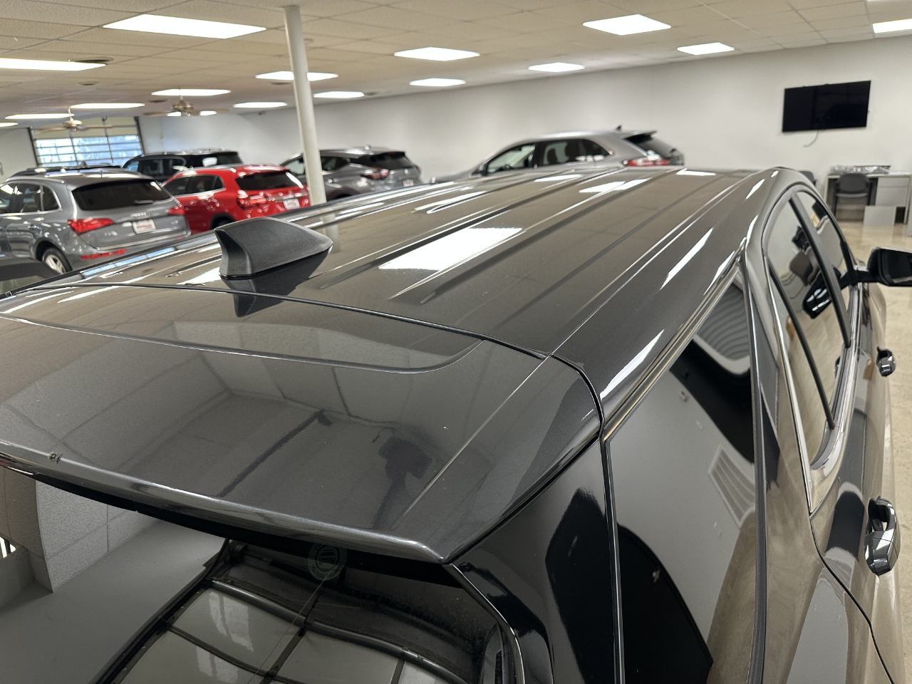 Comfort and Convenience Pkg includes front and rear park assist, remote start, dual-zone climate control, front heated seats with driver power seat, leather-wrapped heated steering wheel, power liftgate, Advanced Safety Pkg with HD surround vision, adaptive cruise control, outside heated power mirrors with integrated turn signals, lane change alert with side blind spot zone alert, Infotainment 3 Plus system with 8-in HD color touchscreen, 2 USB ports, 2 USB data ports, SD card reader, aux input jack, Bluetooth, 17-in Aluminum wheels, Iron Gray Metallic with Medium Ash Gray cloth seating, Local 1 - Owner, No Accident CarFax report, Serviced locally.