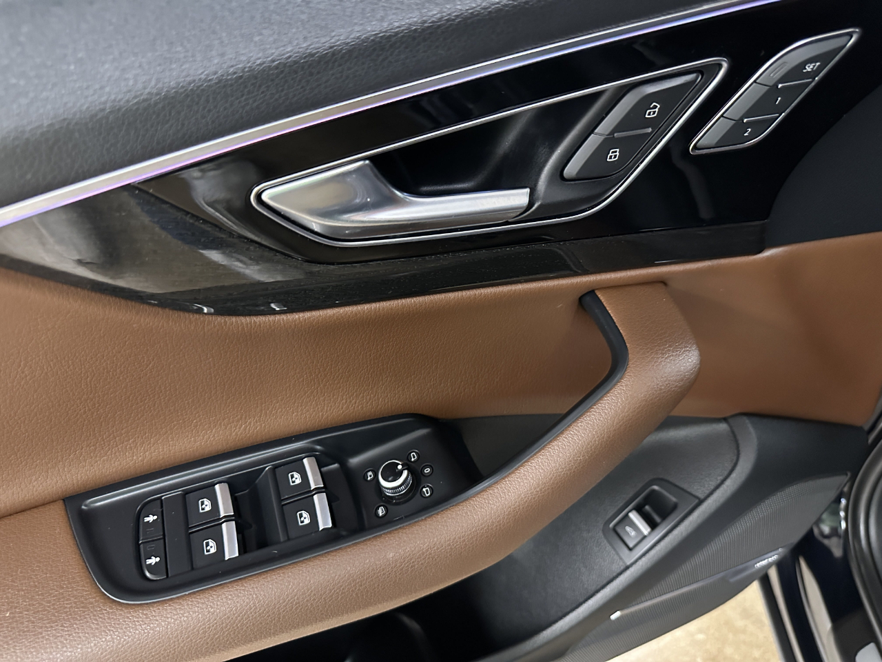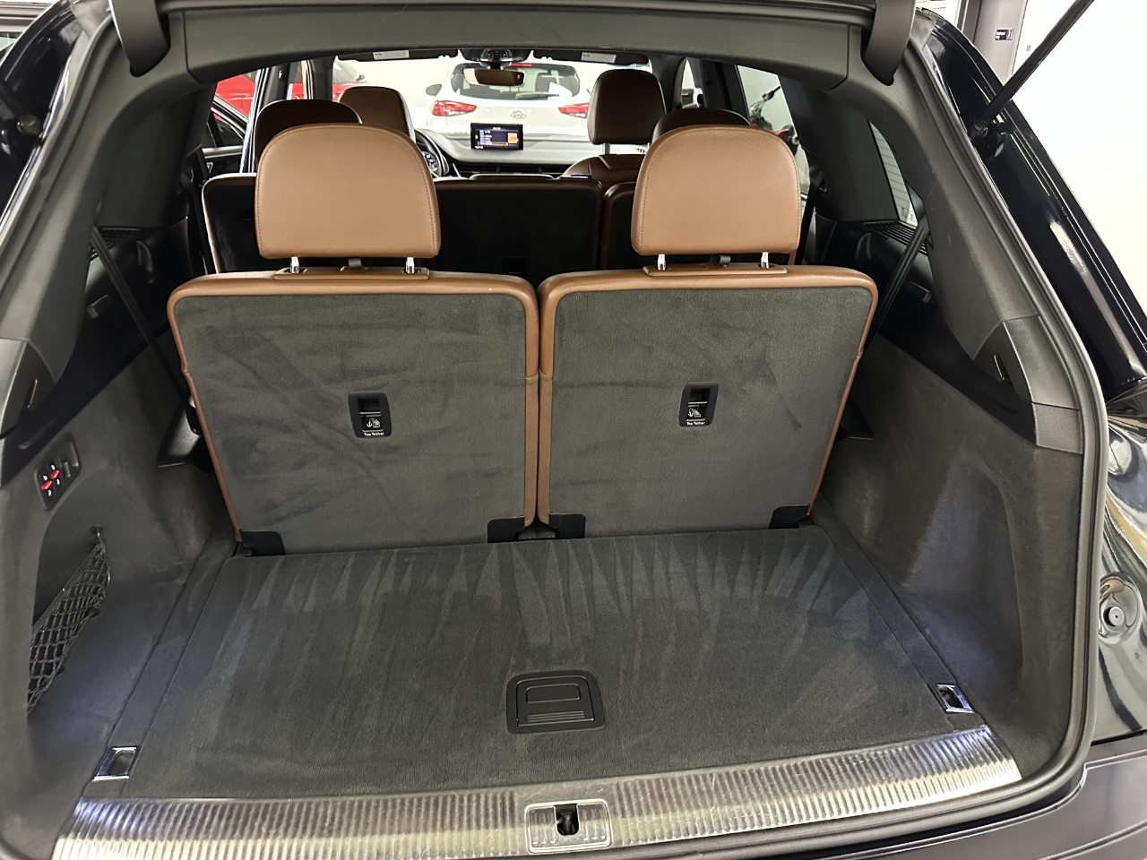 Prestige Pkg with 3D Bose surround sound system, Audi Side Assist, Head-up display, Navigation, Smartphone integration, Full LED headlights, 12.3-in LCD digital instrument cluster, Topview camera system, 4-Zone auto climate cotrol, Power heated/ventilated front seats with power lumbar, LED interior lighting package, Electric tilt/telescoping steering column with memory, Power soft close doors, Heated auto-dimming power folding exterior mirrors, Cold Weather Pkg with heated rear seats and heated steering wheel, Towing Pkg, 20-in 10-Spoke bicolor star design wheels, 1st and 2nd Row sunroof, Power rear liftgate, Ink Blue Metallic with Nougat Brown leather-appointed interior, No accident CarFax report, Locally owned and serviced.