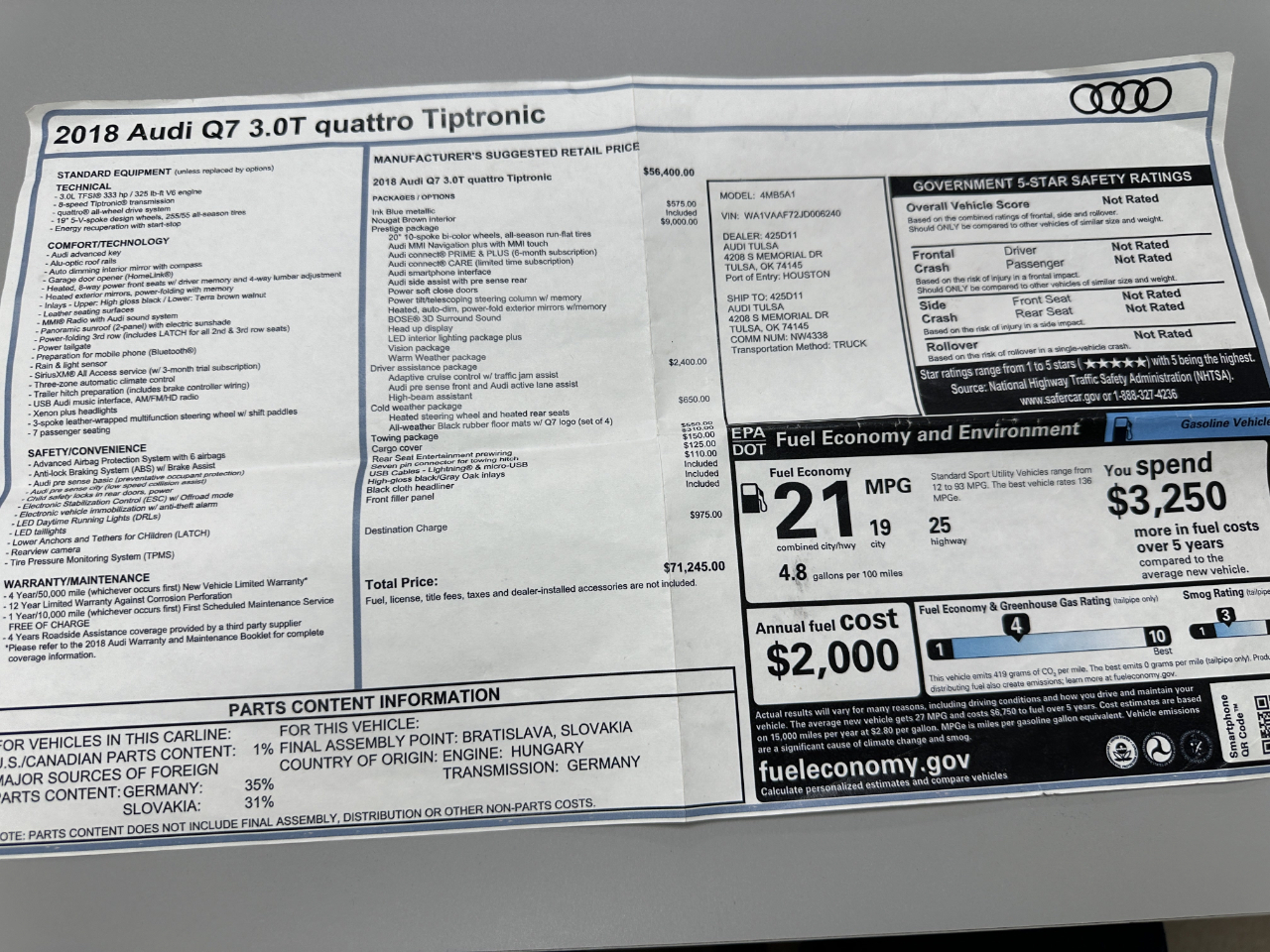 Vehicle Inquiry for 2018 Audi Q7 3.0 TFSI Prestige